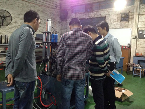 松普電器公司總經理鄭先生來到本公司,第一個要求去的地方并非辦公室或者休息間,而是本公司的設備測試車間。而本公司的測試車間主要負責設備出廠前的測試和新客戶定子的試驗,在里面有本公司完整的落線生產線。在現場我們的技術人員用專業的操作和本公司設備的優勢讓鄭先生感到本公司的實力和真誠的服務。另外鄭先生了解到本公司前身是生產電機,累積的十多年經驗且總經理的技術與專業,讓其堅定了購買設備的決心,為此在參觀后的下午鄭先生與本公司總經理簽訂合作關系,在本公司訂制槽絕緣紙插入機、槽片機、嵌線機、綁線機、初整形機和終整形機。