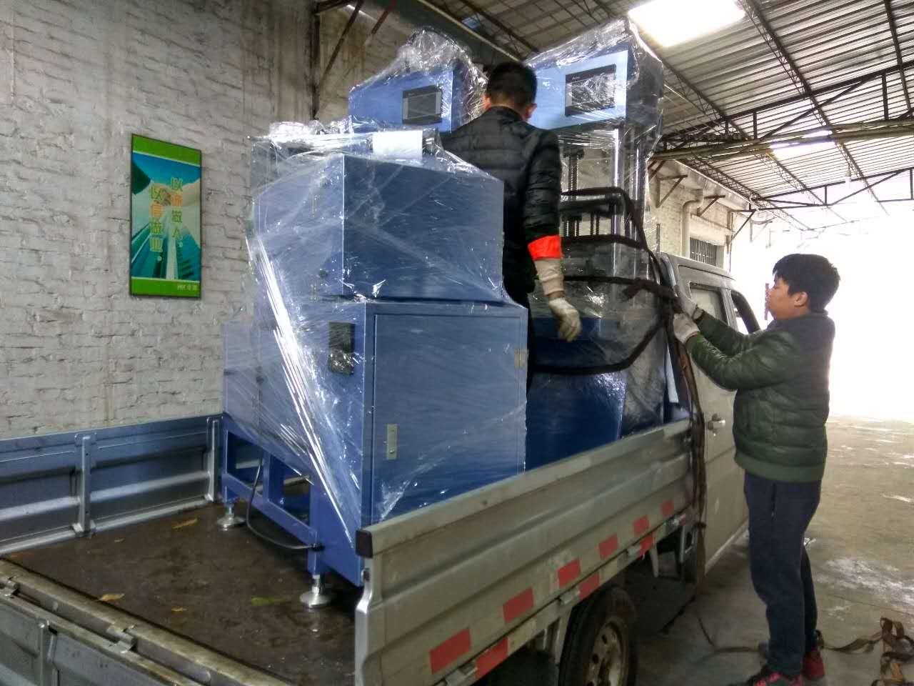 同日,合作已久的南海客戶增訂的一組嵌線設(shè)備打包出貨,包括簡(jiǎn)易組合嵌線機(jī)、伺服初整形機(jī)、定子終整形機(jī)、自動(dòng)單面綁線機(jī)。